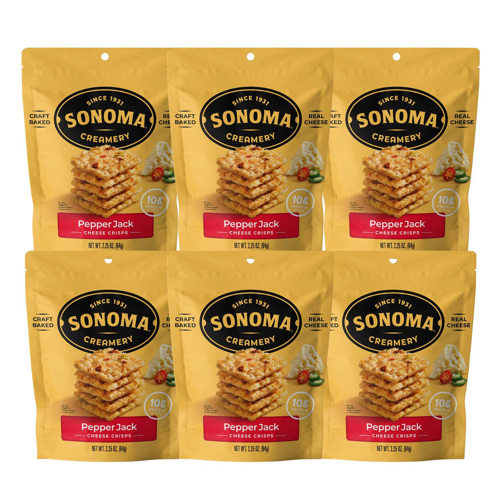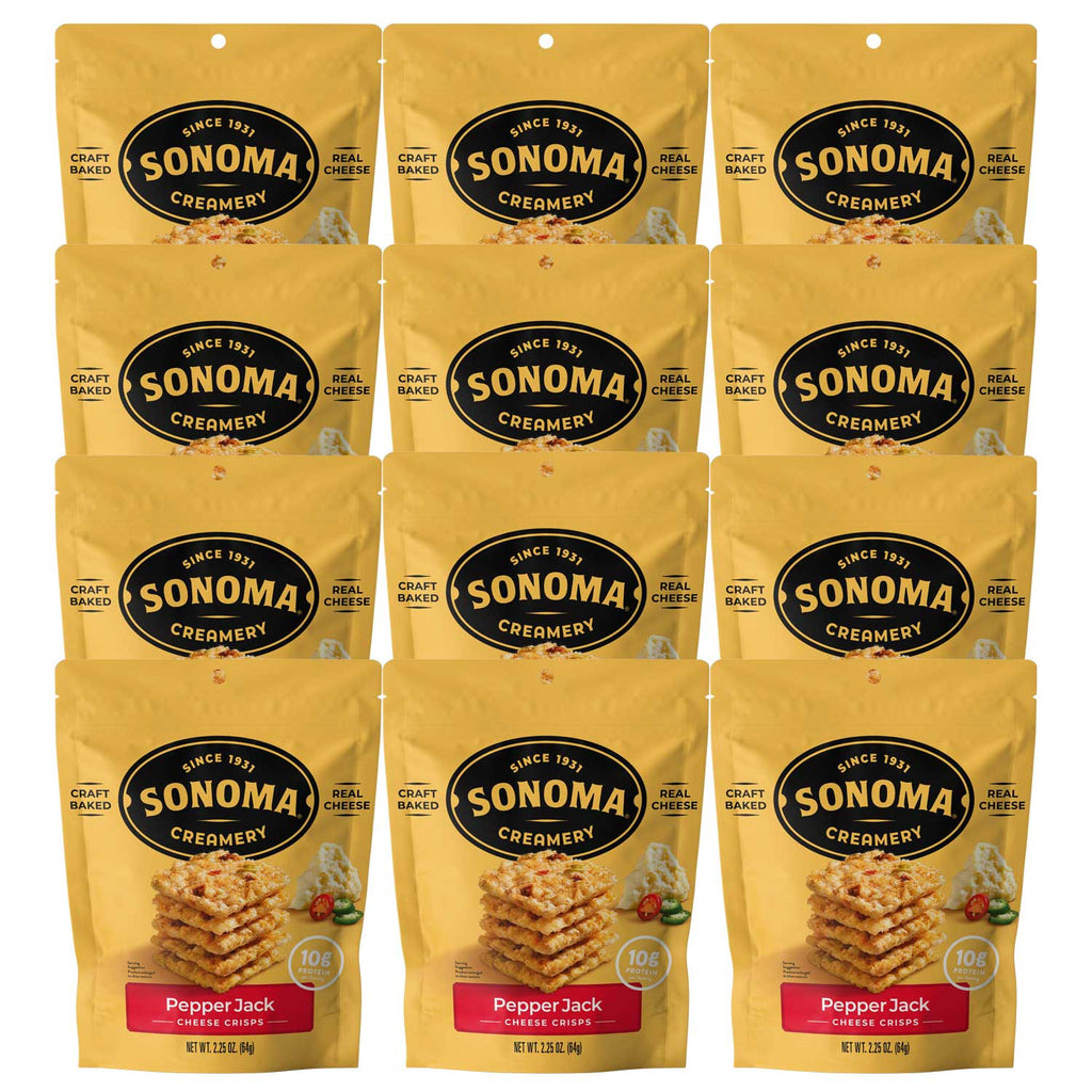 Sonoma Creamery Pepper Jack Cheese Crisps are baked, never fried crunchy Real Cheese Snacks. Based on our famous Sonoma Hot Pepper Jack recipe, we bake in 10-Month Aged Parmesan and a sprinkling of gluten free grains. Each bite delivers a delightful crunch with a mild kick of heat. Packed with flavor and oh so snackable, our Pepper Jack Cheese Crisps are sure to be a crowd pleaser.